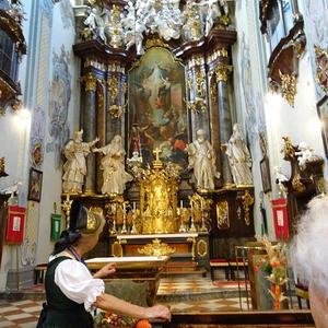 Um 15 Uhr absolvierte Dr. Marlene Reiter mit einer kleinen Gruppe eine sehr interessante Kirchenführung beginnend bei der Mariensäule.