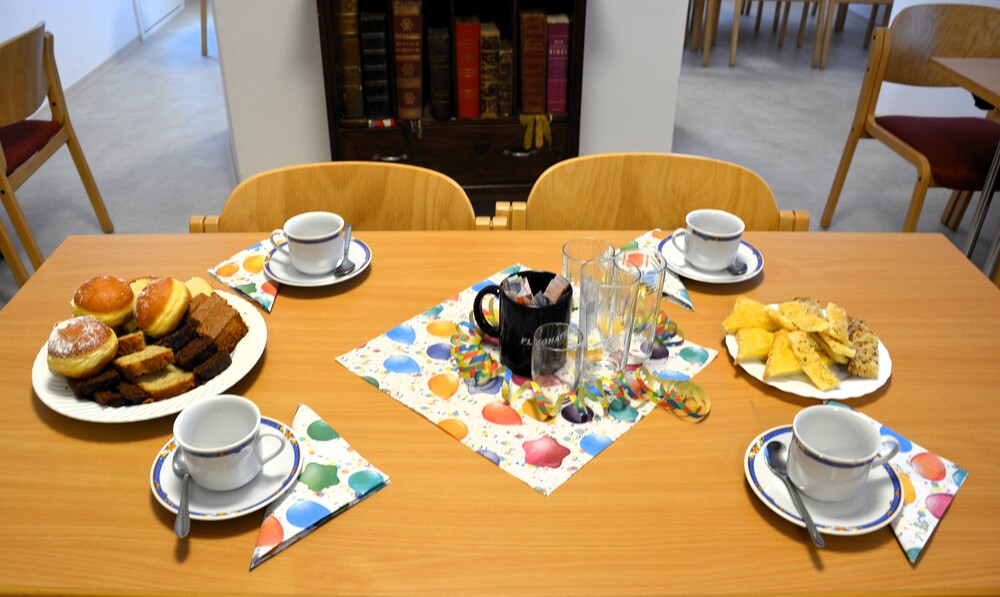 Tanja Fassolter und Stefan Deutsch vom Generationentreff teilen Kinderbibeln an die Kinder aus, bevor sich alle bei Kaffee, Kuchen und Broten im BEGEGEGNUNGSzentrum stärken. Margret Hofmann, Pastorales Pfarrteam Liturgie und Öffentlichkeitsarbeit